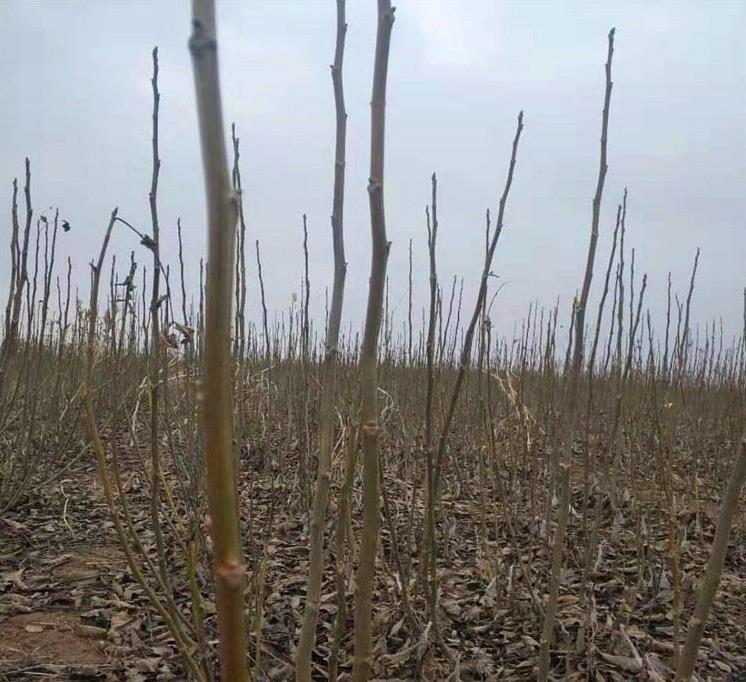5.越冬管理及起苗。苗木在9月上中旬封顶木质化,可在垄上直接越冬。翌春随起苗、随假植。起苗用机引起苗犁或人工挖掘,起苗时幼苗的主根长要保留18~20厘米,起出后要进行临时假植,用湿土将根部埋好踩实。